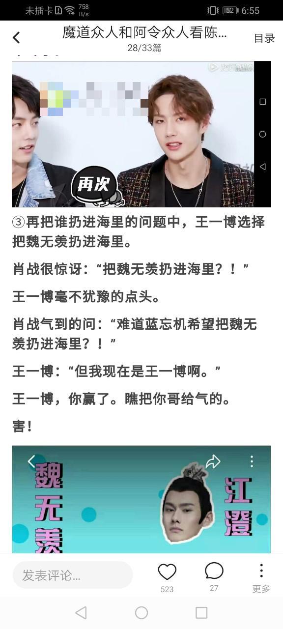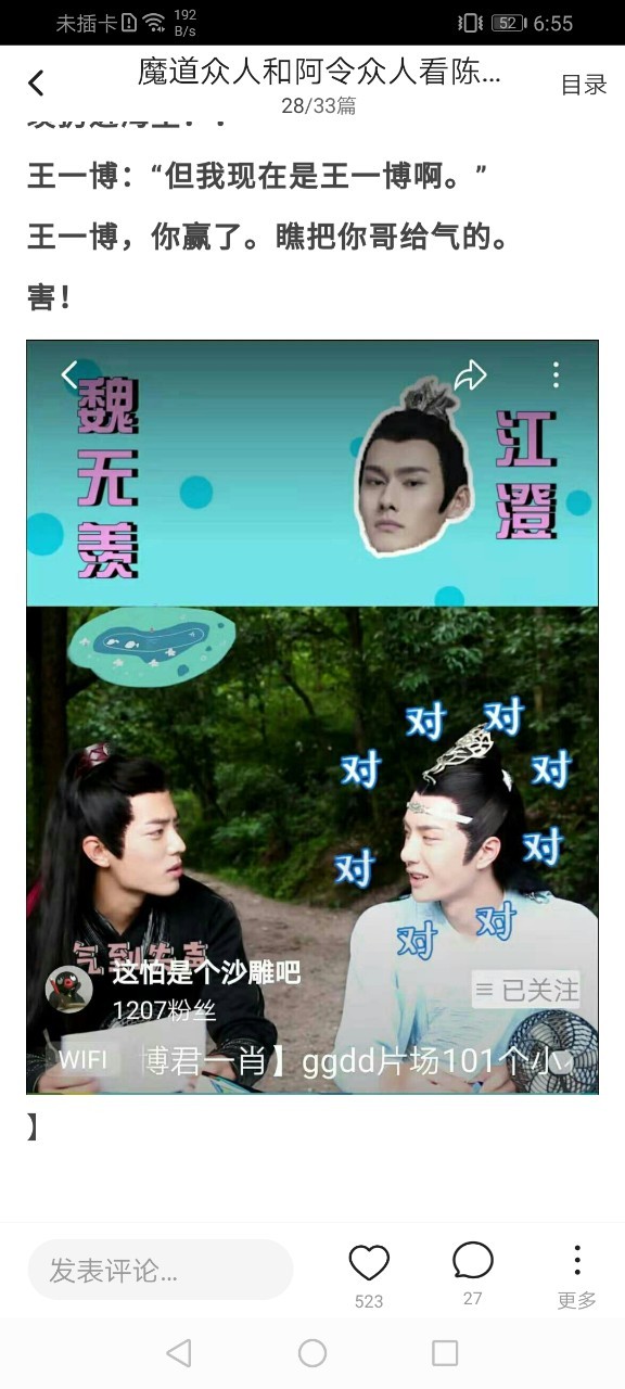 剩下的人表示牙疼,本以为可以损一下魏无羡,没想到又被秀一脸。