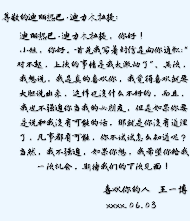 迪丽热巴这封信上写到