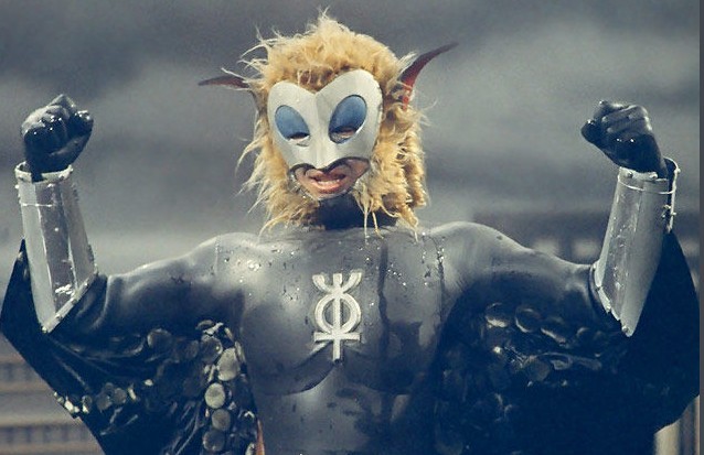 外星人。眼睛发出两条蓝色的黑暗光线,头发出着毁灭的气息。