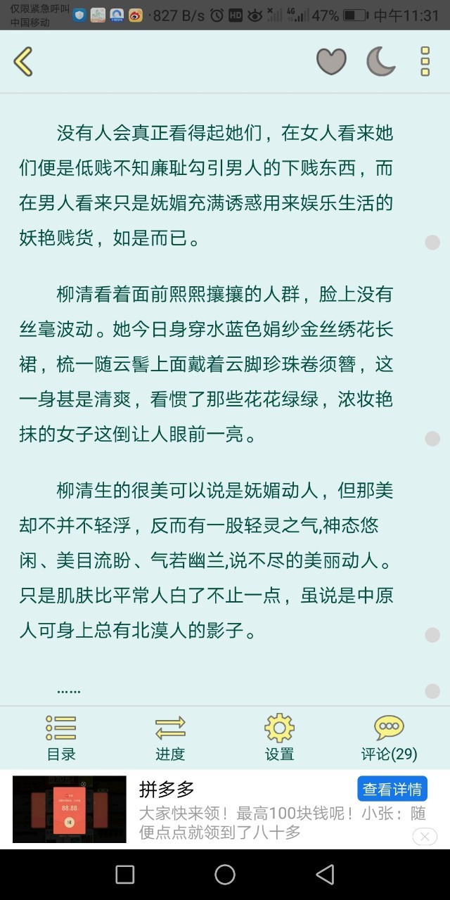 阿清还有大家加油看看这位作者她的描写功力,真的很深厚,外貌描写、服饰描写都十分传神个,这个真的应该被学习一下,我受教了。