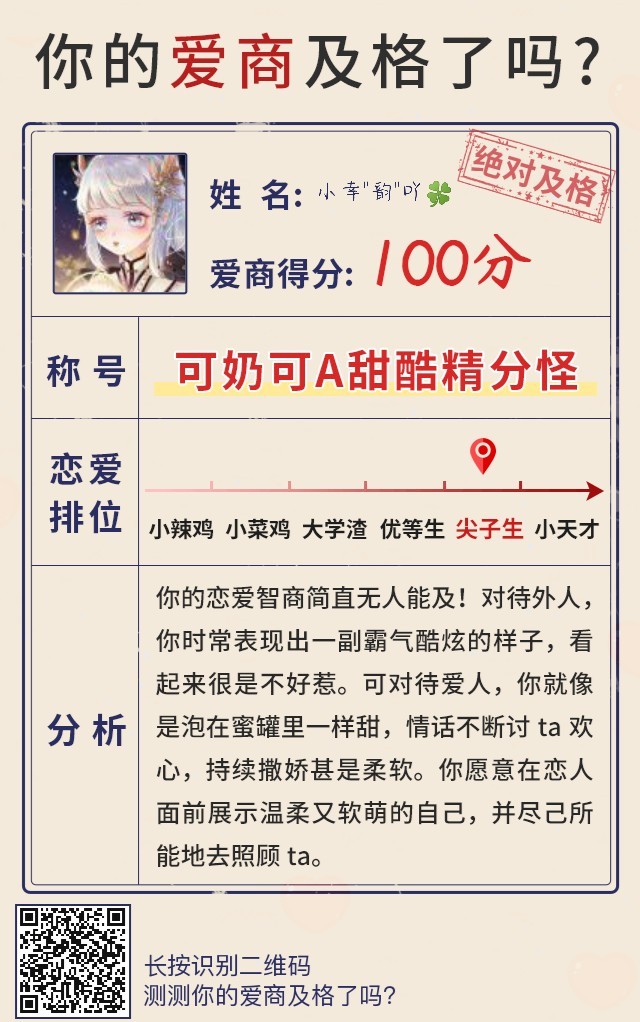 作者大大你们的爱商和我一样及格吗?