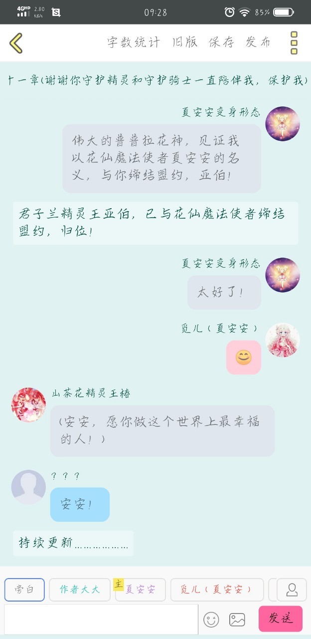 夏安安变身形态花仙的魔法使者啊!听从女神的召唤,跟随精灵们的圣歌,花之奇迹!