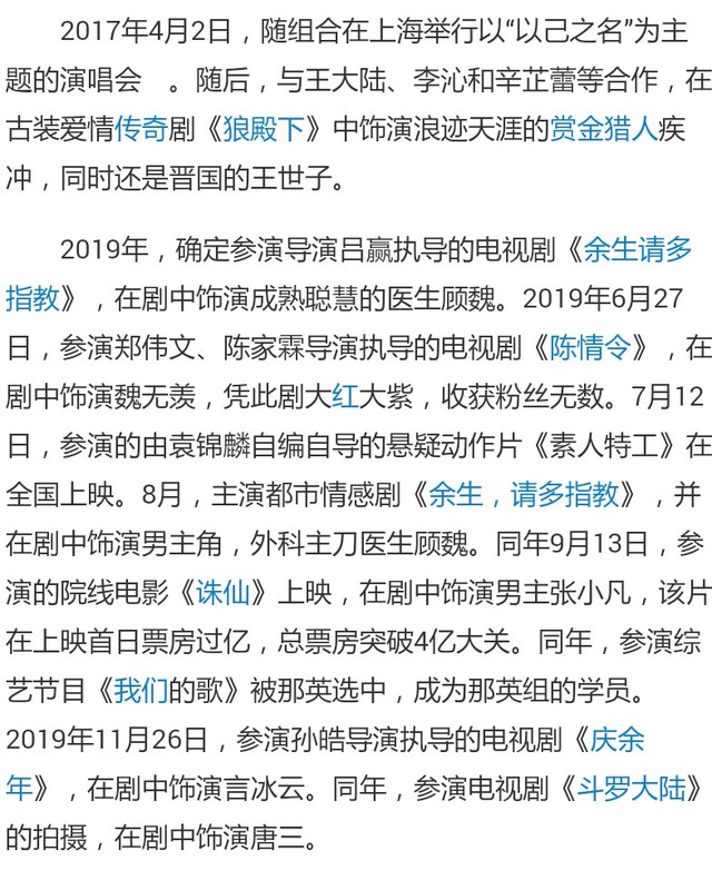 代表作:《陈情令》,《微微一笑很倾城》,《德纳鲁酒店》,《九州天空城》,《三生三世十里桃花》,《少年派》,《我们的少年时代》,《小别离》,《微时代》…………