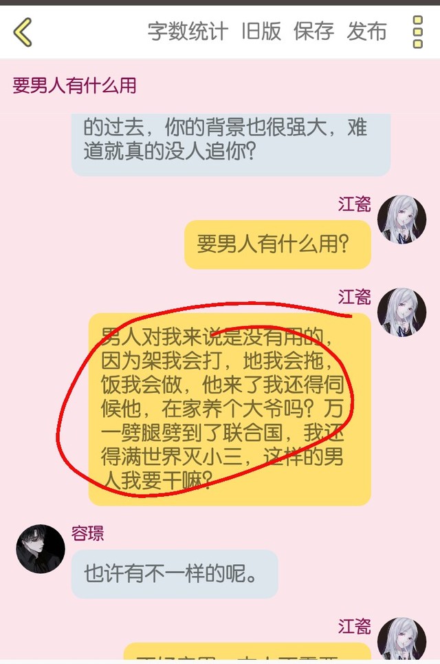 江瓷男人对我来说是没有用的,因为架我会打,地我会拖,饭我会做,他来了我还得伺候他,在家养个大爷吗?万一劈腿劈到了联合国,我还得满世界灭小三,这样的男人我要干嘛?