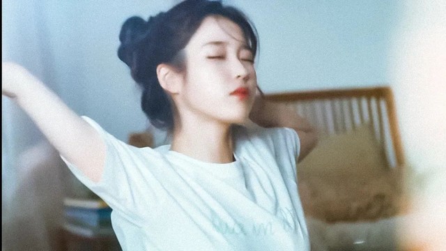 陈思羽坐在茶几前,伸了个懒腰
