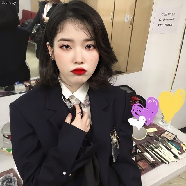 化妆师正准备给佳恩上口红来着,佳恩赶紧躲开