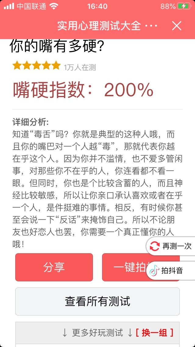 作者大大:我做了个测试,结果我竟然和唐晓翼这么像!