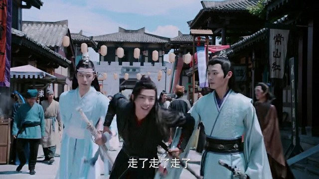 我一路跟着他们来到了栎阳城,一进城门魏无羡就被卖酒的小厮给吸引住了,不由自主的端起小厮手中的酒喝了起来,可一抬头就看见蓝湛自己走了,魏无羡追了上去扯着蓝湛衣服上的带子,在注意到蓝湛冷死人了的眼神之后,悻悻的松了手