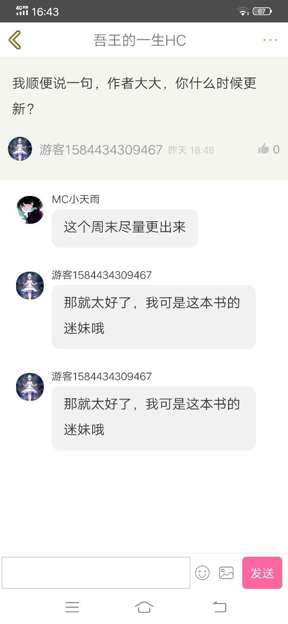 小天雨作者因为这位小读者的请求,所以我决定冒着作业没写完被爸妈骂的风险更文