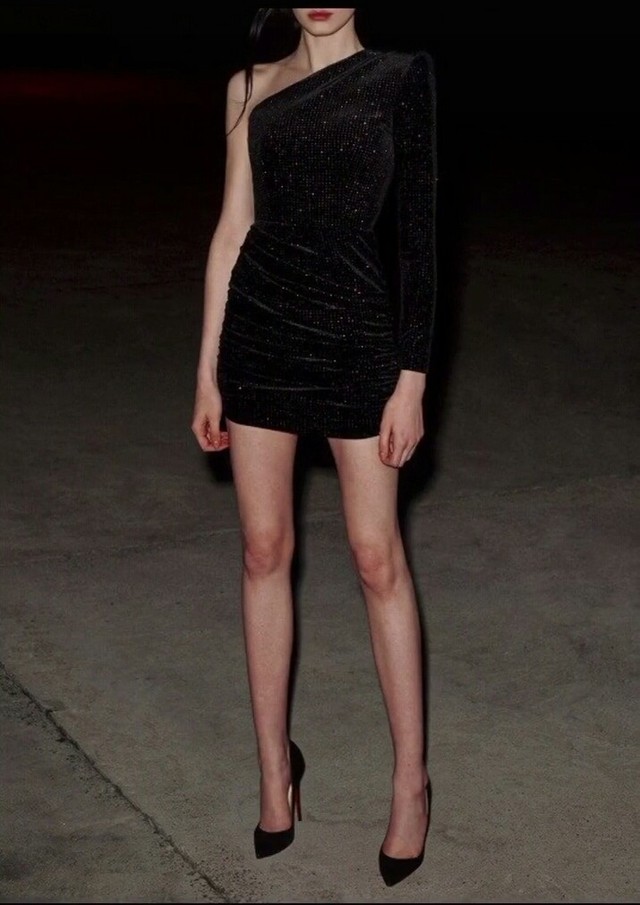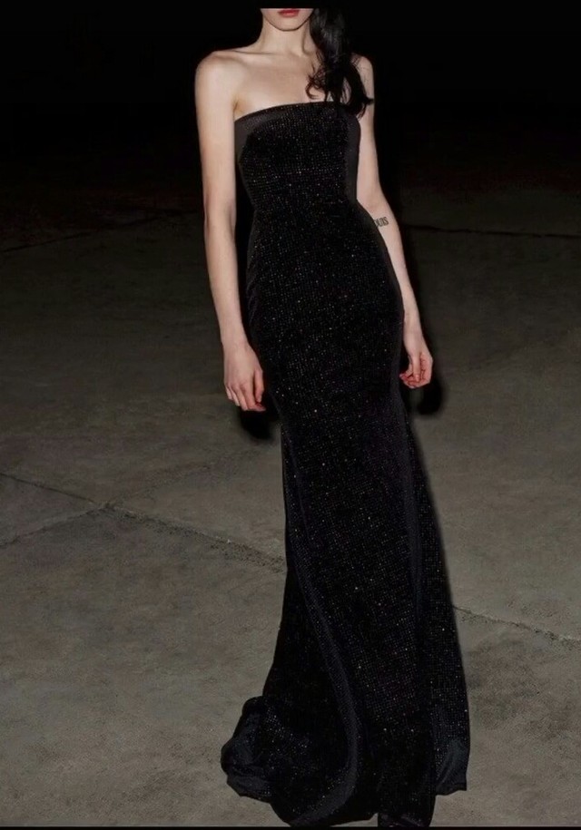 苏千瓷从衣架上拿出一件黑色的拖地长裙