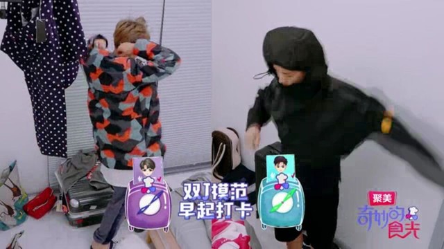 黄明昊Justin出来了,大家吃早饭了。