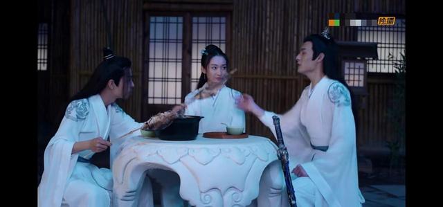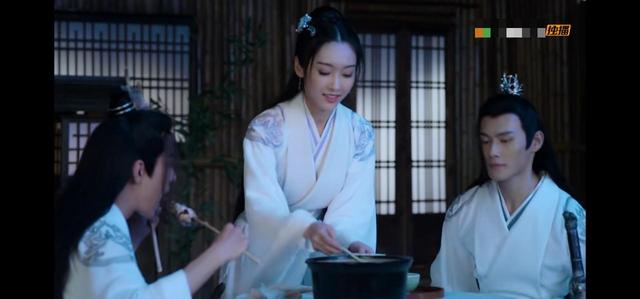 江厌离盛完汤后坐下来,慈祥的看着你们三个人的互动。