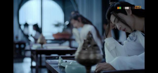 蓝湛,江澄和金子轩认真听讲,聂怀桑打着瞌睡,魏无羡直接爬在桌子上睡觉,你则是手肘杵在桌子上睡着觉。