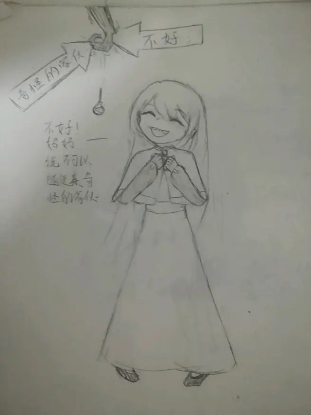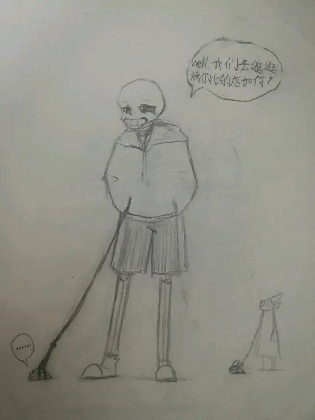 补充:因为耳朵坏掉一只所以听力不好,有耳朵尾巴只是为了符合上一张图,和装饰品差不多,两种形态会互相转换,如果AU中的怪物攻击它,它会消失,但会再回来