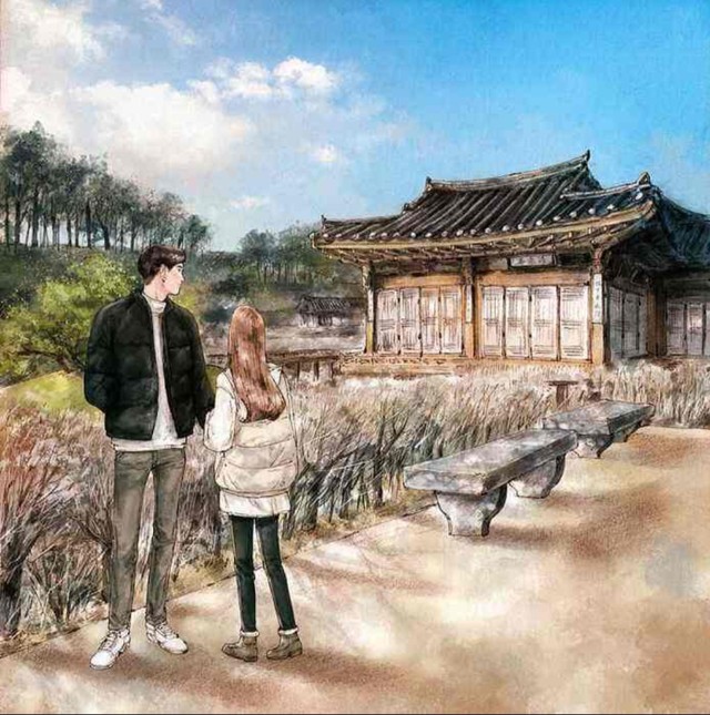 亭子极具中国古风,立在湖畔中心,夏之踏着步子,迈上青石板桥,桥的两旁是红漆的雕栏。