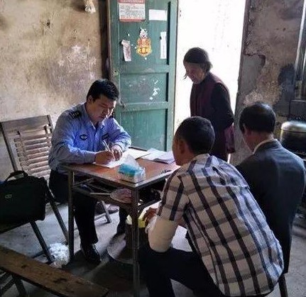 一间小屋子里,警员刘富贵在审讯着男孩的亲人。