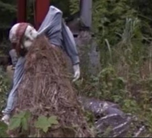 陈佳佳我在男孩尸体的案发现场旁边,发现了一张怪咖面具卡在树里。