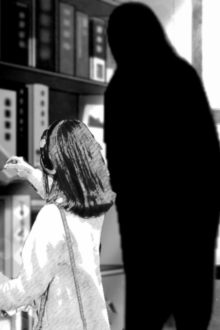 我从一排排书架间慢慢的走过,个别正在看书的人都会抬起他们空洞无神的眼睛看一下我。真是毛骨悚然……
