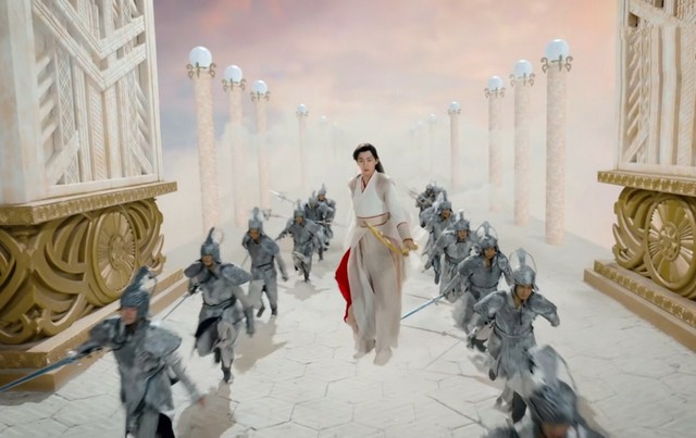 锦觅这一击,将穷奇激怒,穷奇奋力冲破夭夭和润玉的压制,怒气冲冲的向锦觅攻击而去。夭夭急忙跑过去,眼看妹妹就要遇到危险,突然,一支箭飞来,将穷奇射下了南天门。