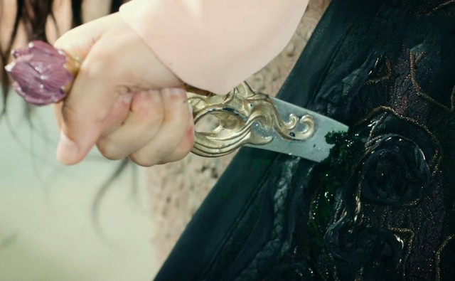 眼看夭夭就要落入下风,旭凤和润玉齐上阵。而锦觅却掏出自己的匕首,深深插进了穷奇的心口。
