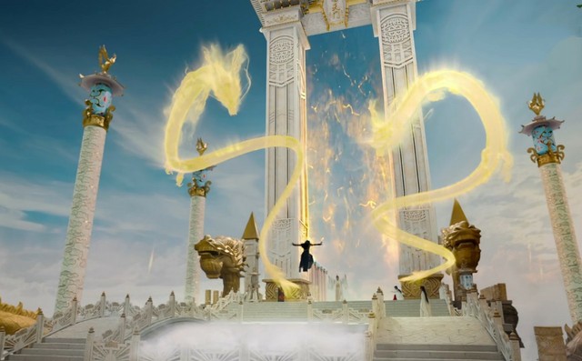 穷奇预备再次运功杀掉夭夭,这时,一股力量将穷奇打飞,身后出现天帝太微的身影。太微运功,两条金龙呼啸而上。