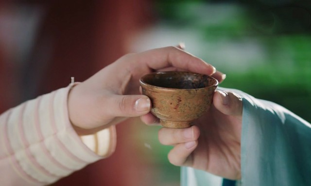 润玉递给夭夭一杯茶水,夭夭伸手接过。