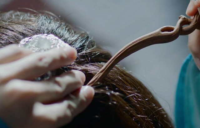 润玉接过葡萄藤,将它变成一个藤簪。