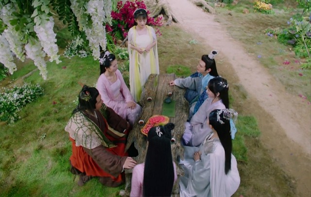 花界,锦觅在玩秋千,而连翘,在后面推着她,夭夭,洛霖,临秀,还有长芳主和老胡,都坐在桌子上看着她。这样一副其乐融融的景象,真的很美好。