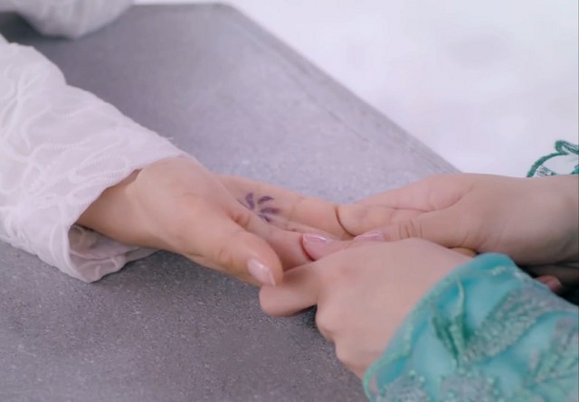 夭夭撩了一下头发,临秀看见夭夭手掌心的花纹,大惊失色,直接拉过夭夭的手。