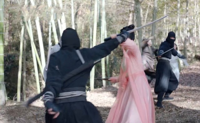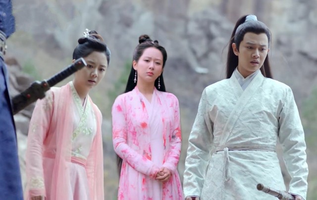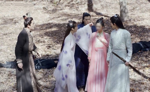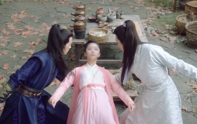 陆绎和谢霄一人一边将韵汐拉倒避开飞镖。