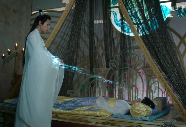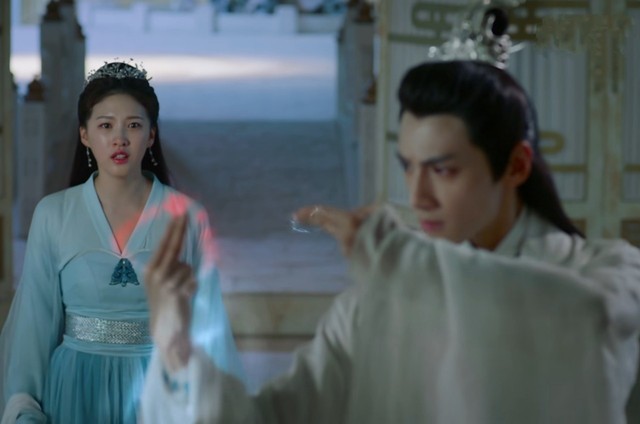 润玉施法救夭夭,邝露刚好经过夭夭房间,看到润玉准备伤害自己,泪水喷涌而出,连忙唤了声。