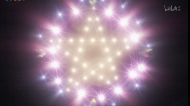 这时场馆上方的五角星排列的灯亮起