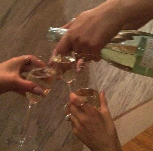 女孩拿起身边的酒