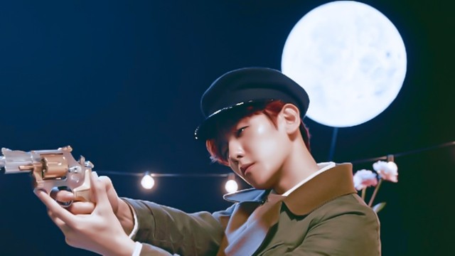 边伯贤俊美且阳刚的脸上有着一抹放荡不羁的笑,声音冷冽,念着熟练的台词,但是眼神里扔没有角色的坚定。
