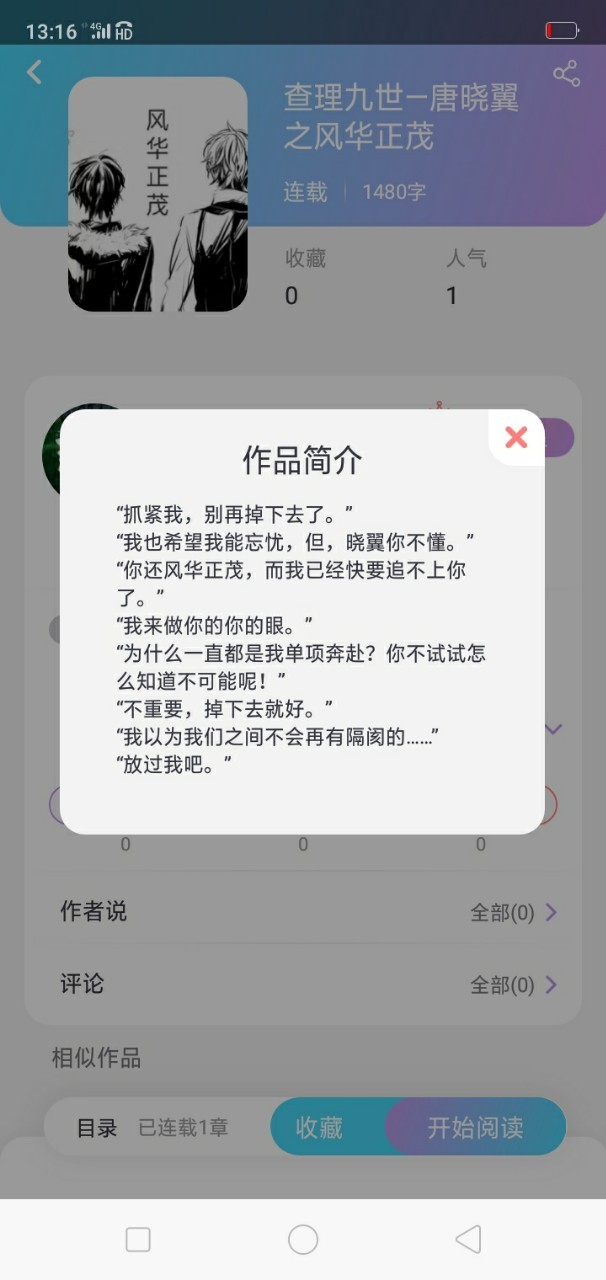 作者羽喵最近新开了一个坑——《查理九世—唐晓翼之风华正茂》