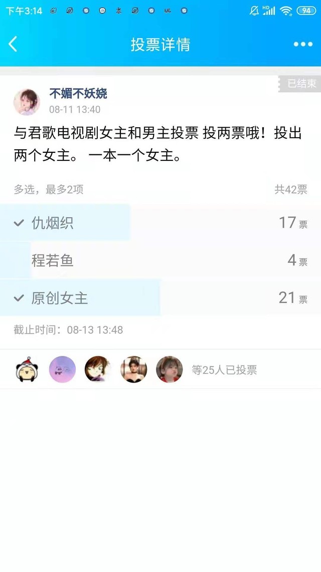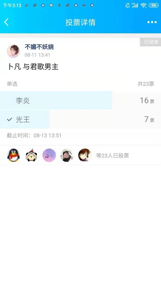 群内投票结果如下,下一个世界与君歌,男主齐炎