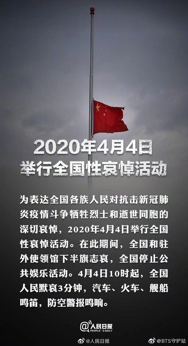 国旗半降,缅怀先烈,鸣笛三分,全国哀悼,愿在天堂的他们幸福美满,愿天堂再无病魔。国家强盛,愿你们此生不悔入华夏,来生还做中国人!