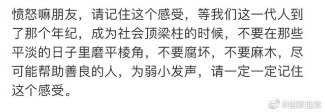 只希望面对任何的暴力事件,所有人都可以坚守内心的正义感。