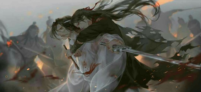 蓝忘机转过身去,就在这时,剑射出去了,因为转身的缘故,剑射在了魏无羡的背后。魏无羡咬着牙,没有叫出来,他不想蓝忘机知道。