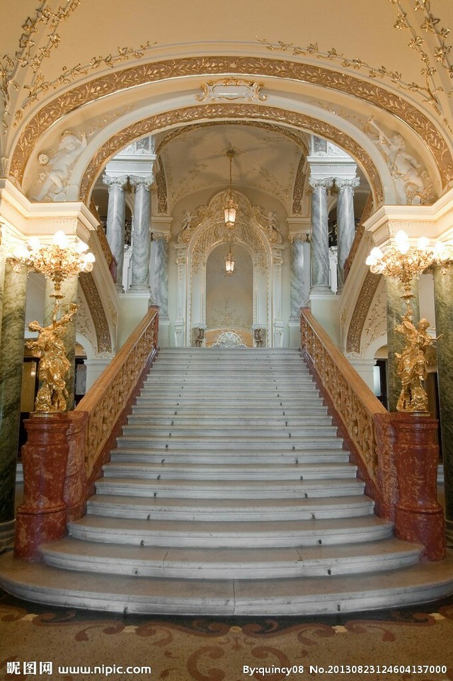 在他的带领下,走过一道道金碧辉煌的走廊,上了一个有一个台阶