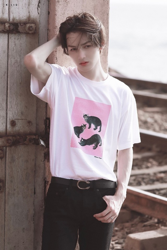 朱正廷刚洗好澡,头发还没吹干,他撩了下鬓角的头发,发丝上的水珠顺着脸颊滑落到下巴,再滴到喉结上,他没带换洗的衣服,就只穿上了西里面那件白T恤。