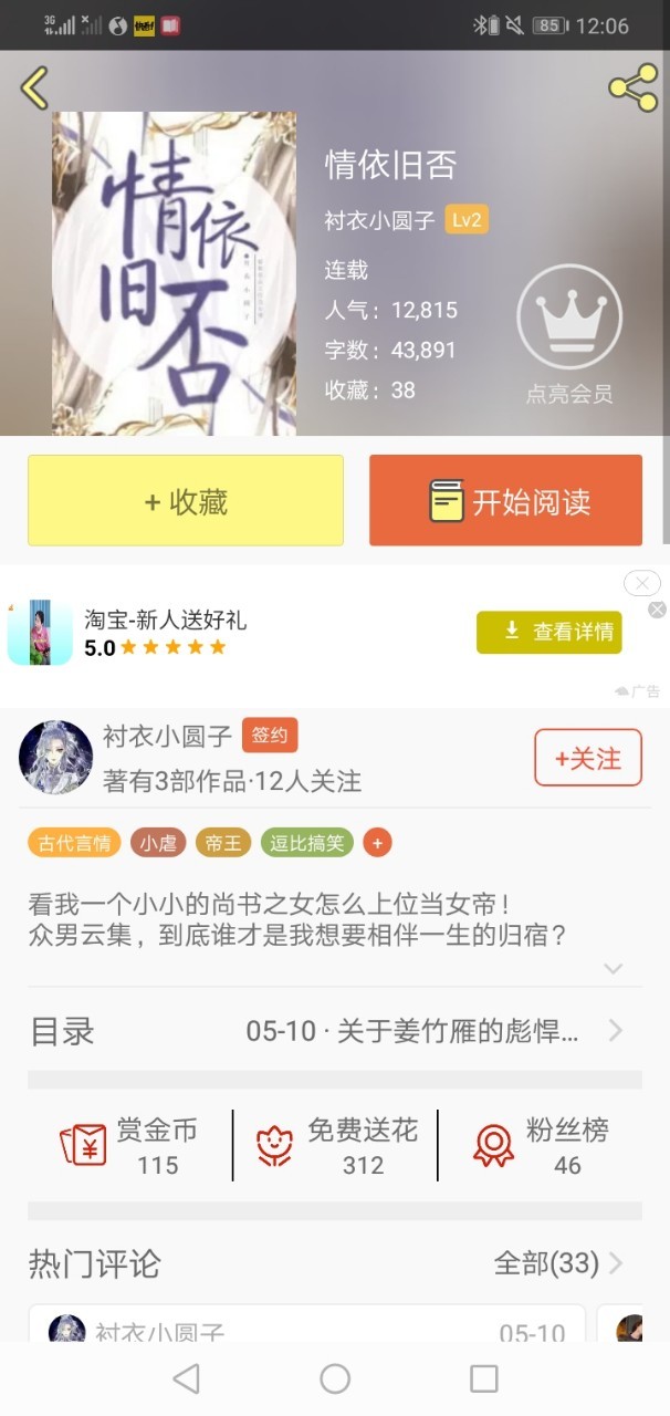 衬衣小圆子类型: 轻松搞笑(特别是前面有笑点), 古言(会甜会虐), 帝王(女主从尚书之女一步步成长为帝王) 三观(有一些关于三观正的章节)。