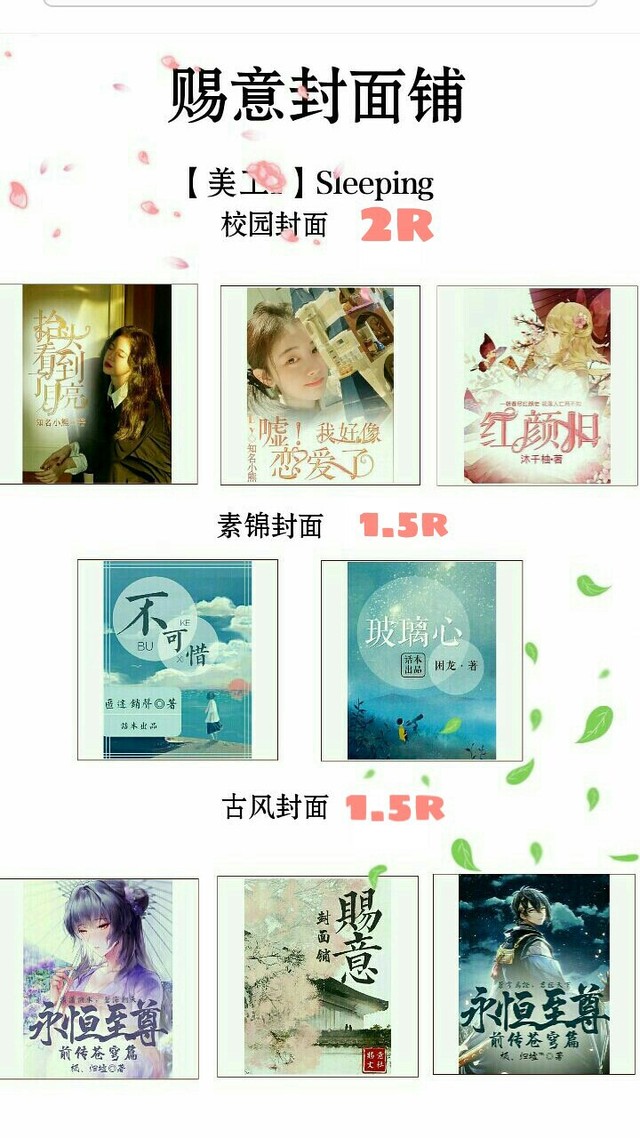 俗话说得好,有了一个完美的开头,就成功了一半。一本好书,怎么能空空留一个封面?封面是吸引读者的一个重要环节,在茫茫群书中,一个好的封面不仅可以引起读者的注意,而且还能提升书本身的气质。而一个好的封面去哪找呢?停下来看看这里。赐意封面铺有你最想要的封面。