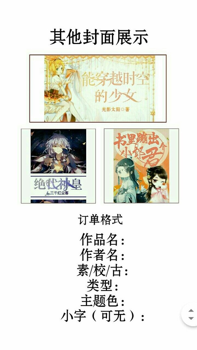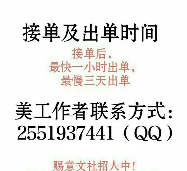作者大大可别被标价所吓到,这只是一个统一的价钱而已,由于赐意文社刚刚成立不久,所以现在正值打折时期!想要订单的读者们可以通过QQ和作者私聊哦