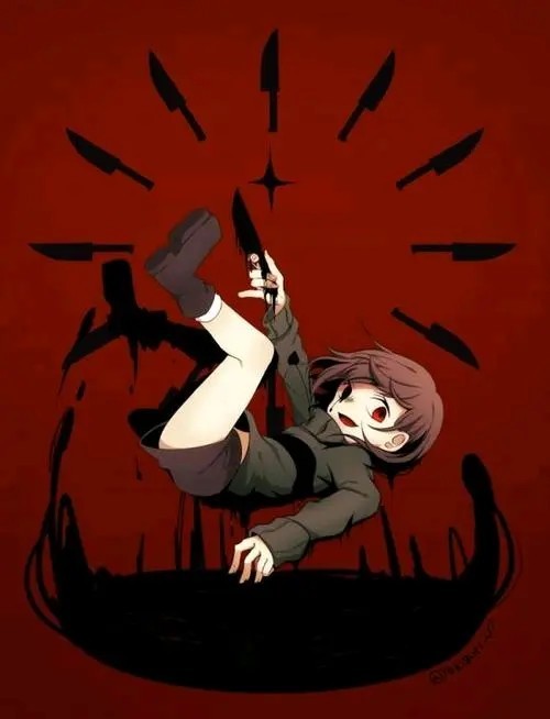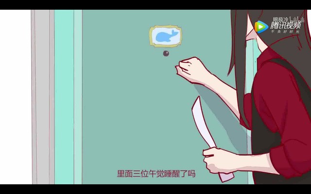 手上拿着一把玩具小刀,呆毛上还绑着一个红色蝴蝶结。她看起来人畜无害,甚至还有点小可爱。