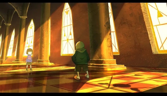 Asriel抱着chara的尸体,缓缓的向结界走去。