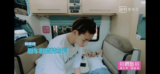 案板、菜刀、肉、油、菜……一样样东西像接力一样被陈立农传送出来,而车上的尤长靖依然还在安睡。