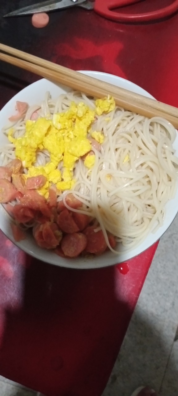 布莱雪(作者)晚上饿了,然后发现家里没啥吃的了,就随便做了一份面