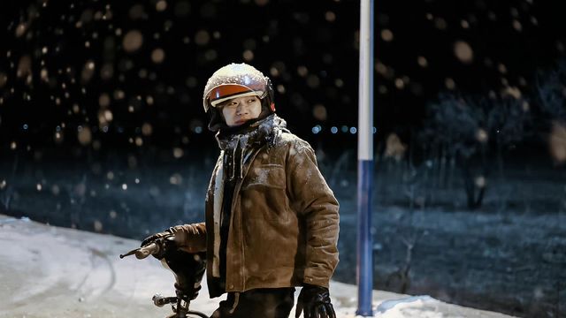 那充满氛围的白围巾和贝雷帽也沾了几片雪花.