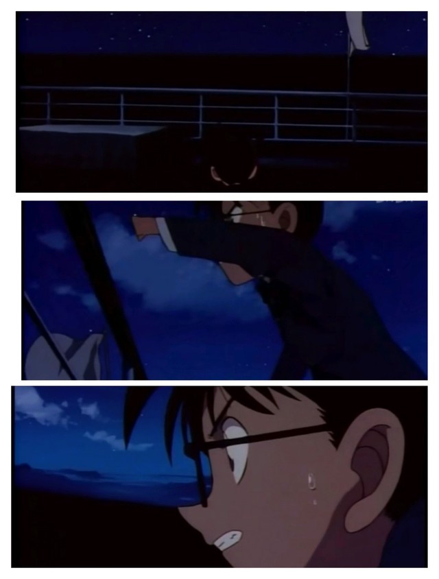 柯南身后伸出一双大手,把还伏在栏杆上的柯南放了下来。